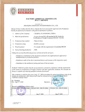 工廠和產(chǎn)品都通過法國“BV”認(rèn)證,“FSC”認(rèn)證和中國“CCS”認(rèn)證