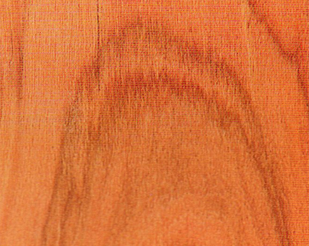 心邊材區(qū)別略明顯。心材深紅褐色至暗紅褐色略帶紫、具黑色細(xì)條紋,久則成銹褐色。邊材色稍淺、生長(zhǎng)輪不明顯。